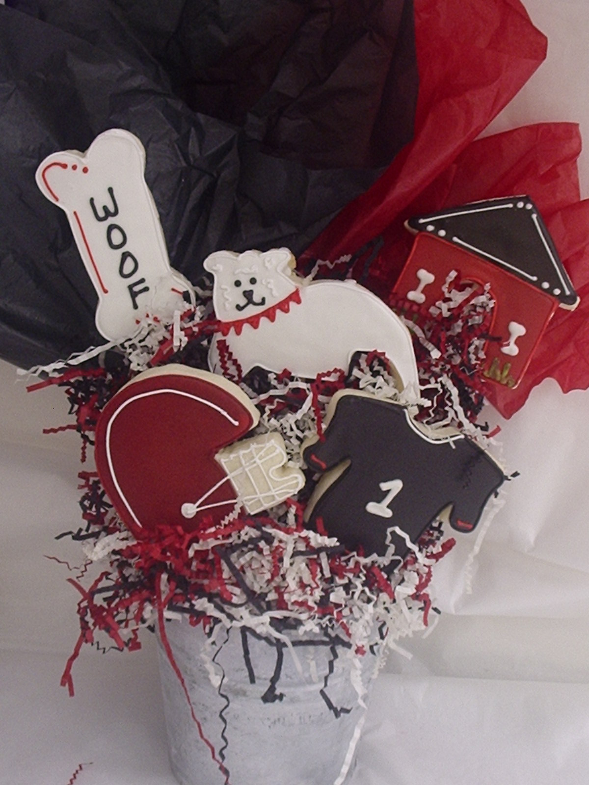 Our specialty is our shortbread cookies. Kids can enjoy a delicious cookie on a stick, while their parents can order a bouquet of cookies, like a flower bouquet but made of hand-decorated cookies arranged in a pail or mug.